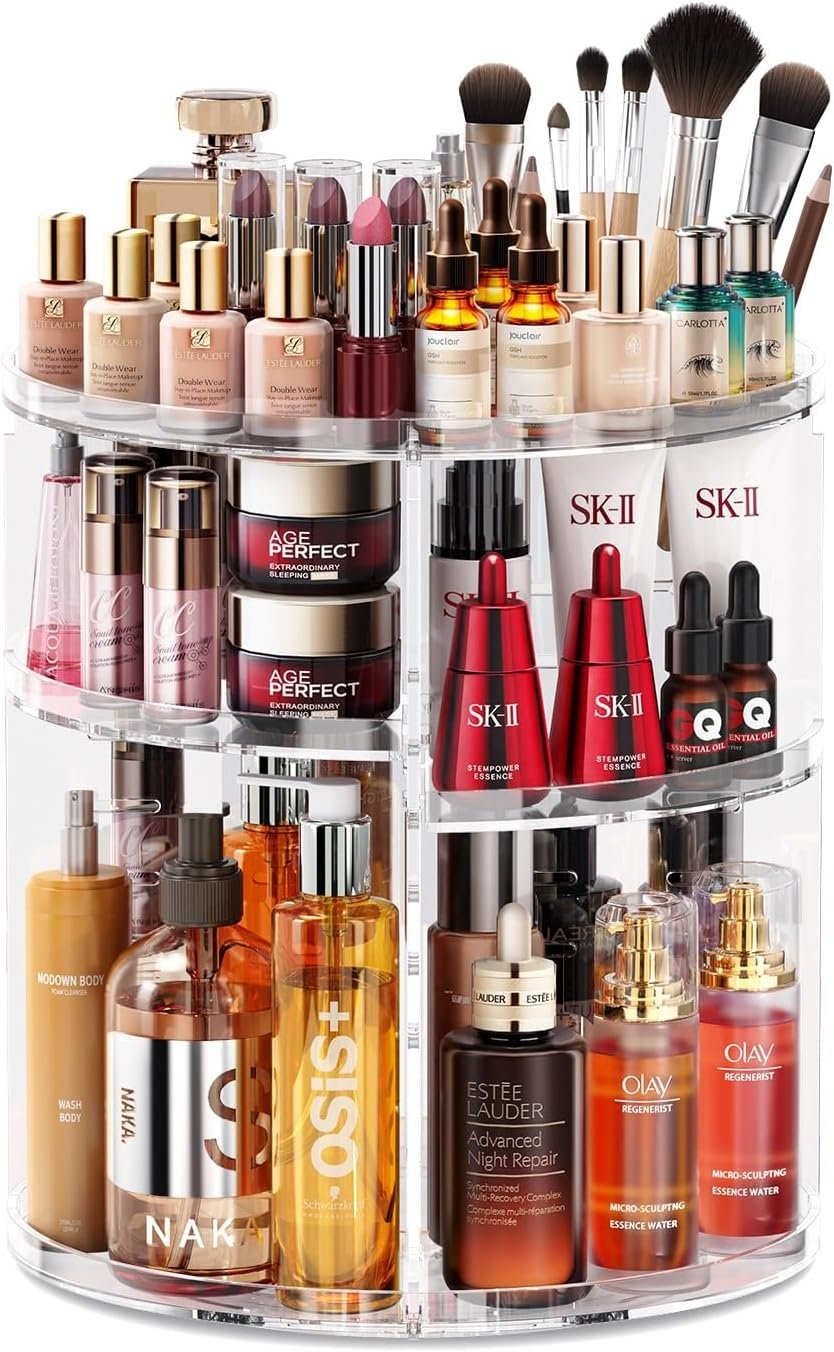 🧱 Gracias a sus múltiples compartimentos y su base giratoria, se adapta perfectamente a tocadores, mesas de maquillaje o estanterías, ayudando a aprovechar mejor el espacio mientras mantiene todo organizado.