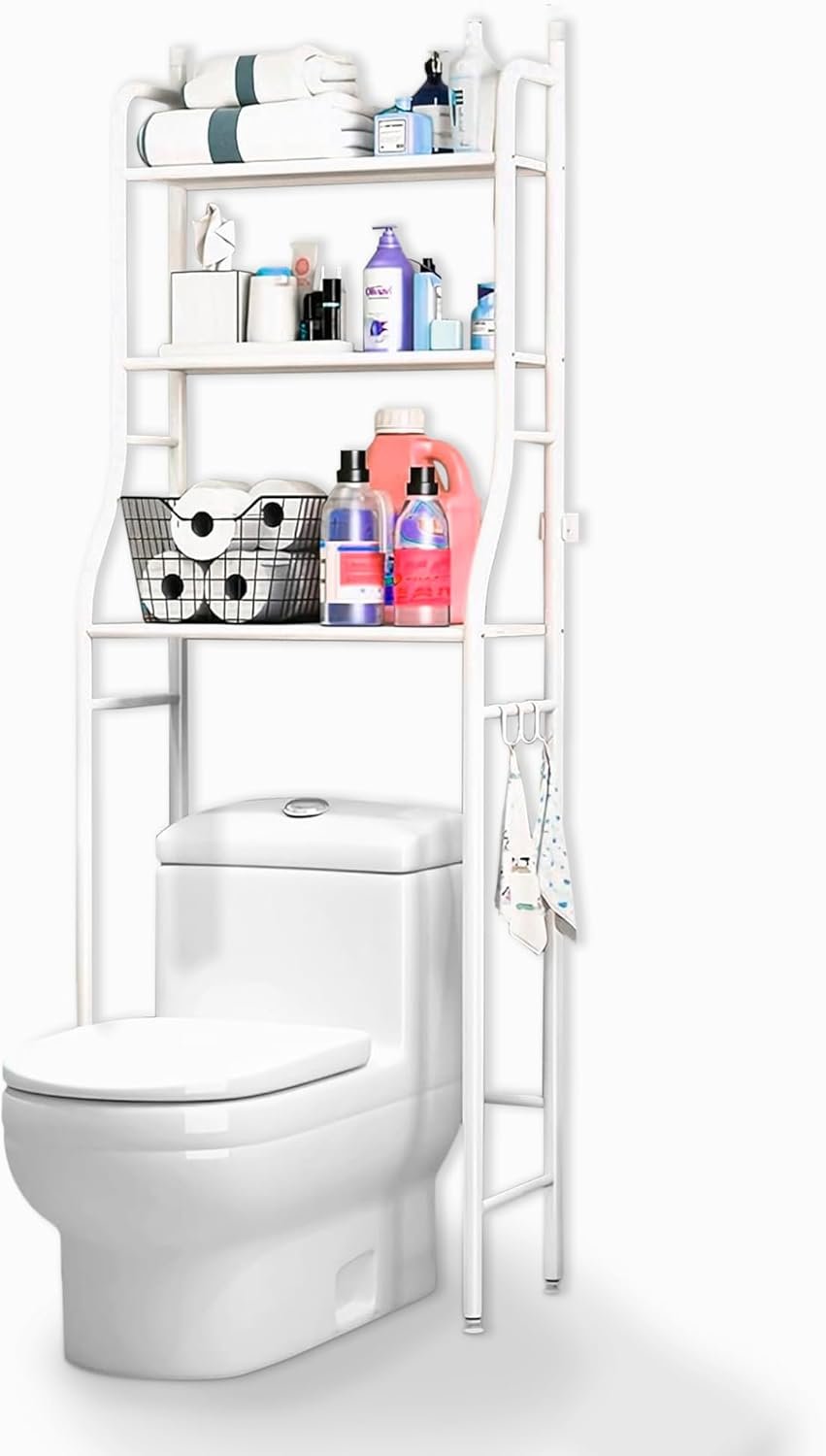 🧱 Su diseño elevado se adapta alrededor del sanitario, creando niveles de almacenamiento para toallas, papel higiénico o productos de uso diario, ayudando a mantener el ambiente más despejado y funcional.